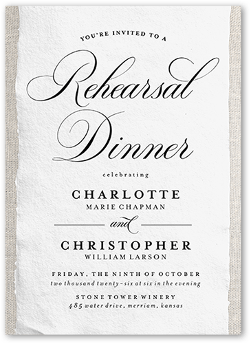The big night before the big day. Invite all your guests with stylish rehearsal dinner invitations.