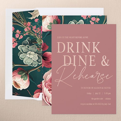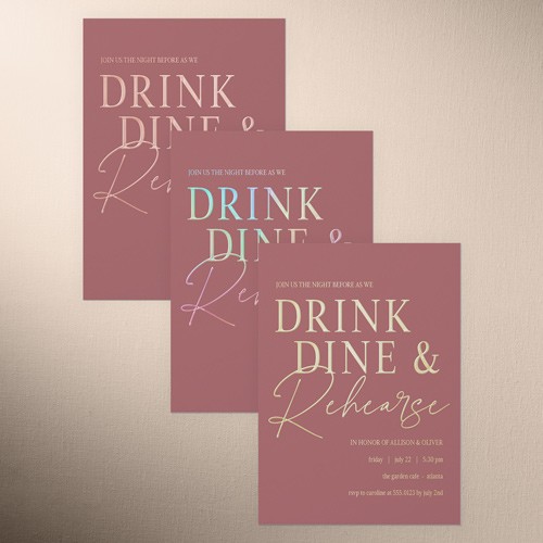 The big night before the big day. Invite all your guests with stylish rehearsal dinner invitations.