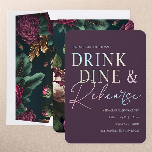The big night before the big day. Invite all your guests with stylish rehearsal dinner invitations.