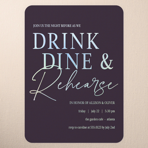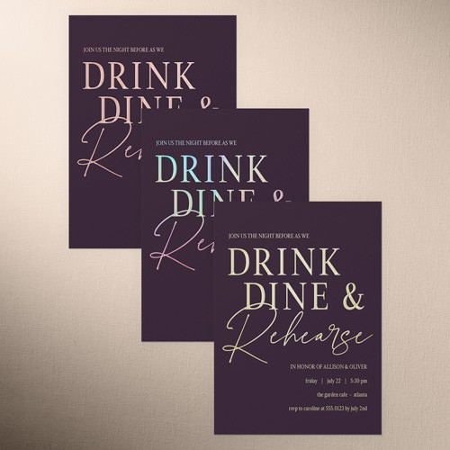 The big night before the big day. Invite all your guests with stylish rehearsal dinner invitations.