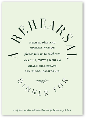 The big night before the big day. Invite all your guests with stylish rehearsal dinner invitations.