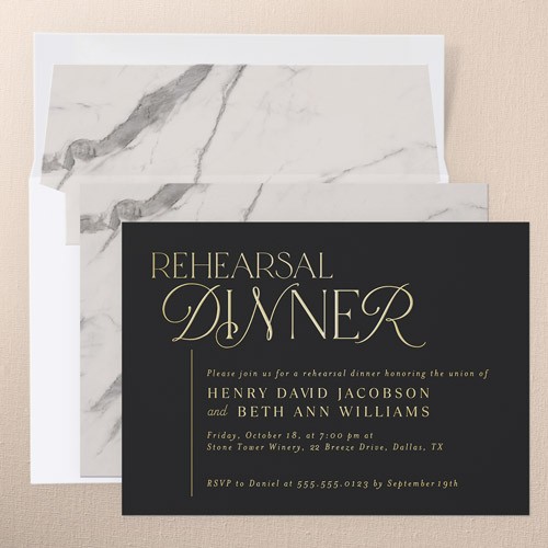 The big night before the big day. Invite all your guests with stylish rehearsal dinner invitations.