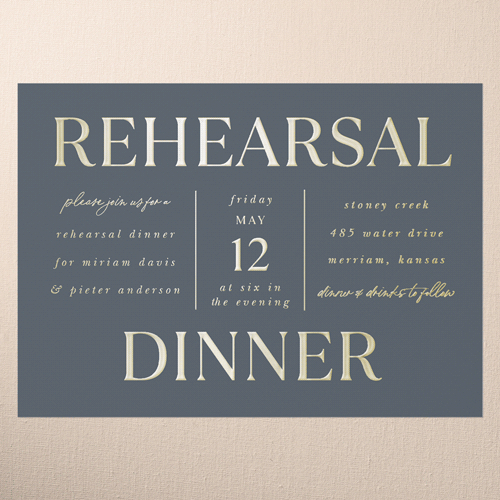 The big night before the big day. Invite all your guests with stylish rehearsal dinner invitations.
