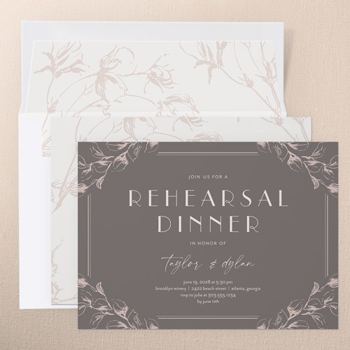 The big night before the big day. Invite all your guests with stylish rehearsal dinner invitations.