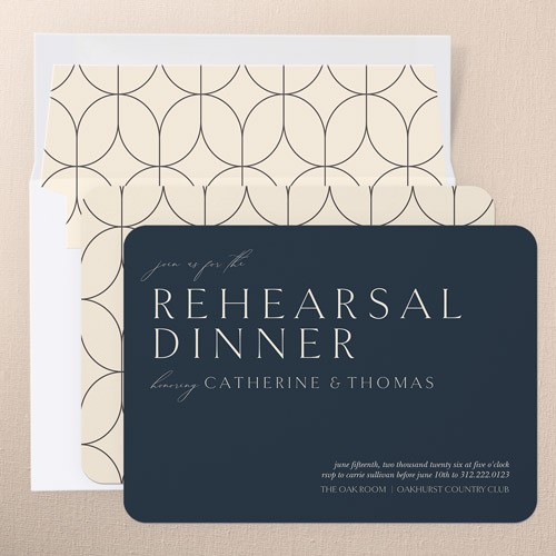 The big night before the big day. Invite all your guests with stylish rehearsal dinner invitations.