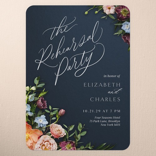 Stunning Floral Corners Rehearsal Dinner Invitation