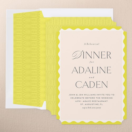 The big night before the big day. Invite all your guests with stylish rehearsal dinner invitations.