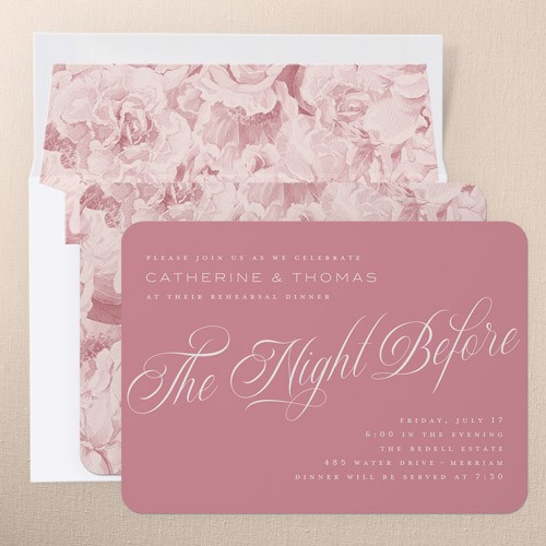 The big night before the big day. Invite all your guests with stylish rehearsal dinner invitations.