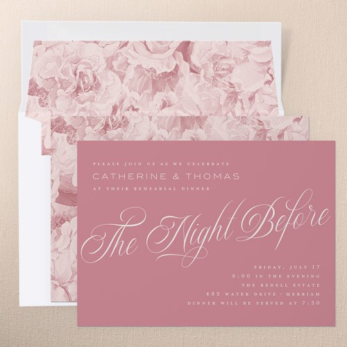 The big night before the big day. Invite all your guests with stylish rehearsal dinner invitations.