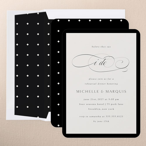 The big night before the big day. Invite all your guests with stylish rehearsal dinner invitations.