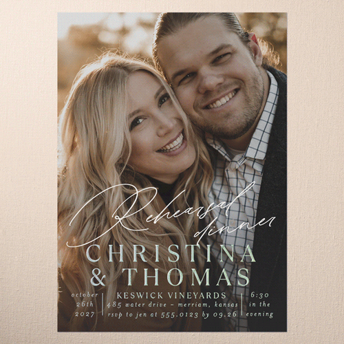 The big night before the big day. Invite all your guests with stylish rehearsal dinner invitations.