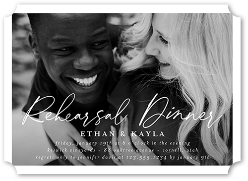 The big night before the big day. Invite all your guests with stylish rehearsal dinner invitations.