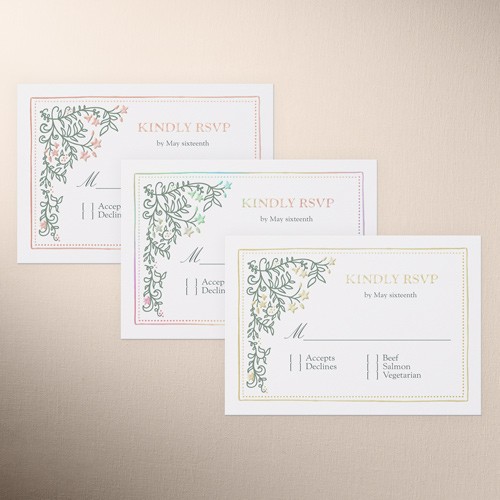 Request the favor of their reply with a stylish response card designed to match your wedding invitations.