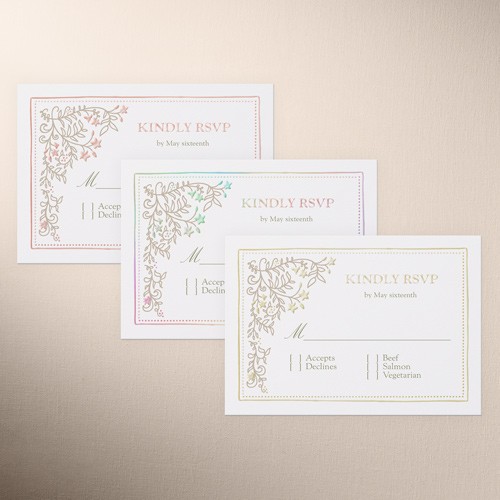 Request the favor of their reply with a stylish response card designed to match your wedding invitations.