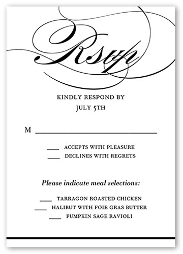 Request the favor of their reply with a stylish response card designed to match your wedding invitations.