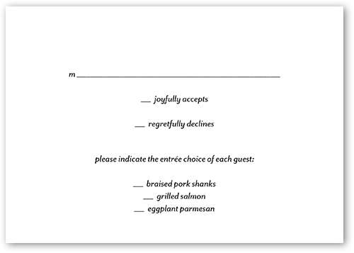 Request the favor of their reply with a stylish response card designed to match your wedding invitations.