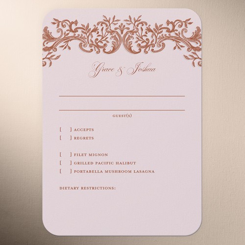 Request the favor of their reply with a stylish response card designed to match your wedding invitations.