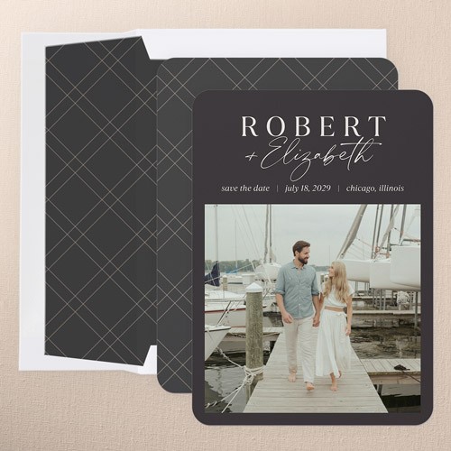 Make sure they mark their calendars with this stylish Save the Date card. Just add a photo and your nuptial details.,Make sure they mark their calendars with this stylish Save the Date magnet. Just add a photo and your nuptial details.
