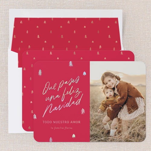 Share holiday memories con familia y amigos by adding a special personalized message to your customized tarjeta de Navidad - including all Spanish letras and acentos. It's the perfect regalito for everyone on your list.