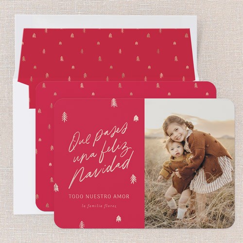 Share holiday memories con familia y amigos by adding a special personalized message to your customized tarjeta de Navidad - including all Spanish letras and acentos. It's the perfect regalito for everyone on your list.