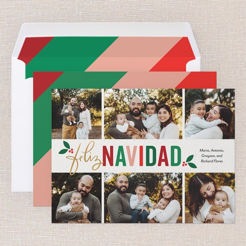 Share holiday memories con familia y amigos by adding a special personalized message to your customized tarjeta de Navidad - including all Spanish letras and acentos. It's the perfect regalito for everyone on your list.