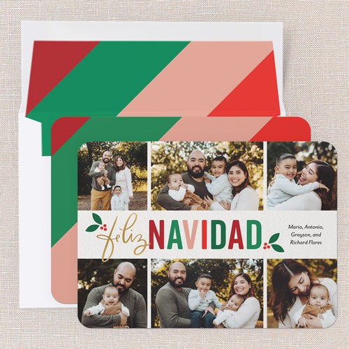 Share holiday memories con familia y amigos by adding a special personalized message to your customized tarjeta de Navidad - including all Spanish letras and acentos. It's the perfect regalito for everyone on your list.