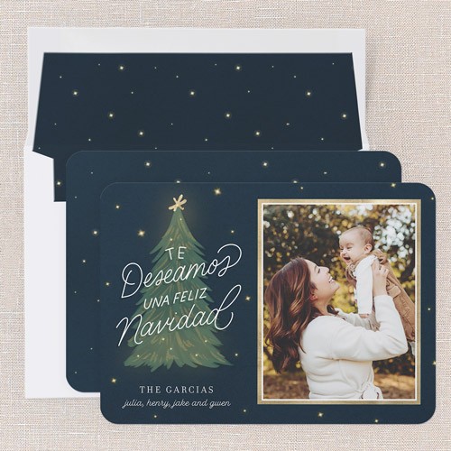 Share holiday memories con familia y amigos by adding a special personalized message to your customized tarjeta de Navidad - including all Spanish letras and acentos. It's the perfect regalito for everyone on your list.
