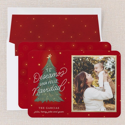Share holiday memories con familia y amigos by adding a special personalized message to your customized tarjeta de Navidad - including all Spanish letras and acentos. It's the perfect regalito for everyone on your list.