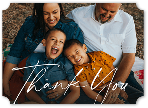 Because they deserve it, express your gratitude with a personalized thank you card. This flat card features 1 photo on the front and up to 16 photos on the back. Available in portrait or landscape orientation, offering a unique way to say thank you. Perfect for showing appreciation in style!