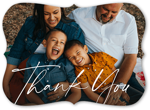 Because they deserve it, express your gratitude with a personalized thank you card. This flat card features 1 photo on the front and up to 16 photos on the back. Available in portrait or landscape orientation, offering a unique way to say thank you. Perfect for showing appreciation in style!