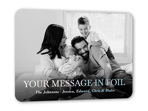 • Illuminate your card with real foil in a raised texture for a premium finish. Personalize your name or text in stunning foil.