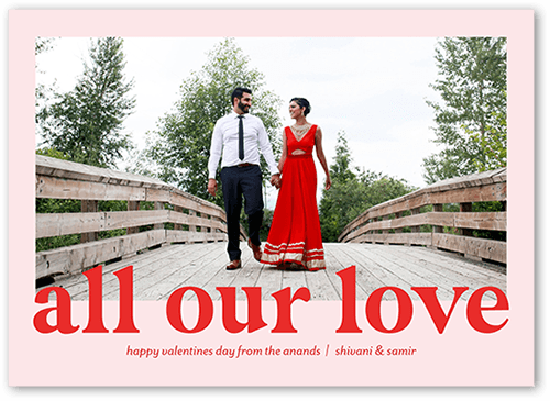 Be mine, Valentine. Fall in love with this sweet Valentine's card. Add your favorite photo and hugs, kisses and wishes.