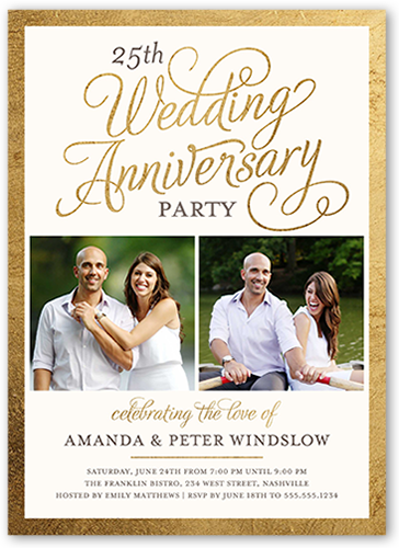 The best love stories are the ones that last. Celebrate a wedding anniversary with a stylish, personalized anniversary invitation. Add photos and all the event details.