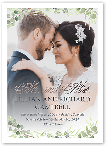 I thee wed. Announce your wedding in style with a favorite photo and the celebration details on this wedding announcement.