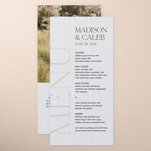 Give your wedding guests a taste of what's to come with an unforgettable menu. Coordinate the design with your wedding stationery suite for the perfect match.
