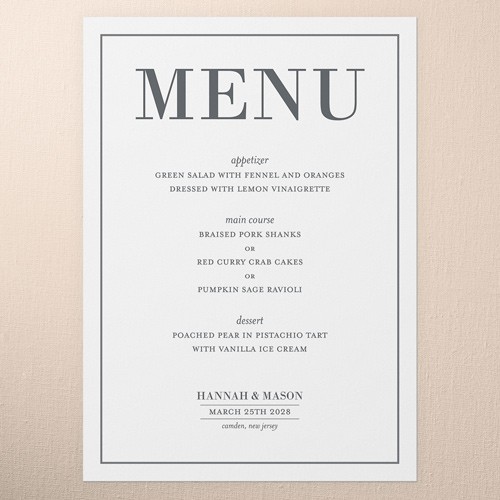Give your wedding guests a taste of what's to come with an unforgettable menu. Coordinate the design with your wedding stationery suite for the perfect match.