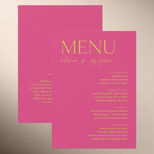 Give your wedding guests a taste of what's to come with an unforgettable menu. Coordinate the design with your wedding stationery suite for the perfect match.