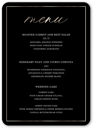Give your wedding guests a taste of what's to come with an unforgettable menu. Coordinate the design with your wedding stationery suite for the perfect match.