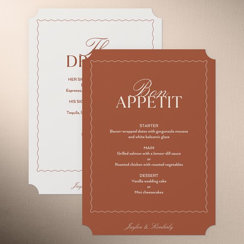 Give your wedding guests a taste of what's to come with an unforgettable menu. Coordinate the design with your wedding stationery suite for the perfect match.