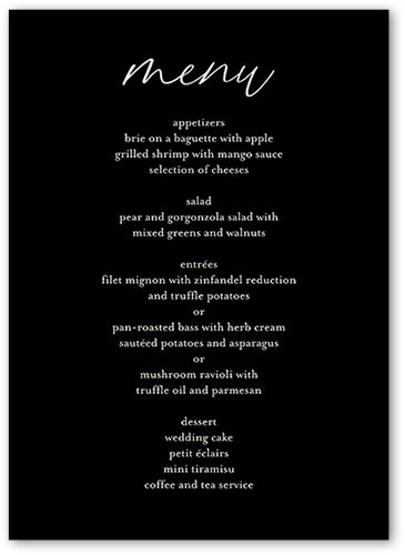 Give your wedding guests a taste of what's to come with an unforgettable menu. Coordinate the design with your wedding stationery suite for the perfect match.