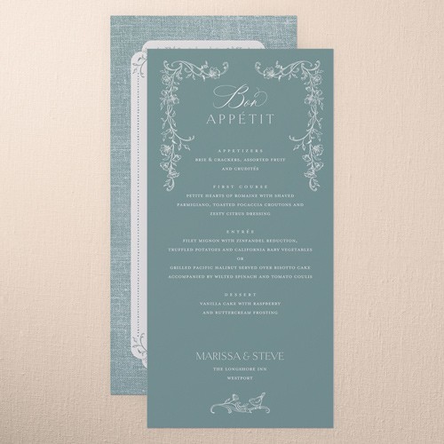 Give your wedding guests a taste of what's to come with an unforgettable menu. Coordinate the design with your wedding stationery suite for the perfect match.
