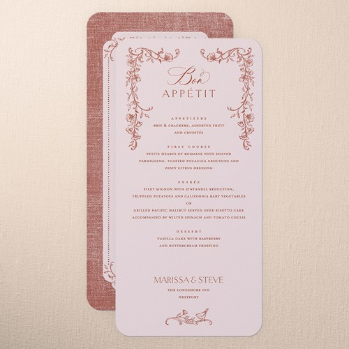 Give your wedding guests a taste of what's to come with an unforgettable menu. Coordinate the design with your wedding stationery suite for the perfect match.