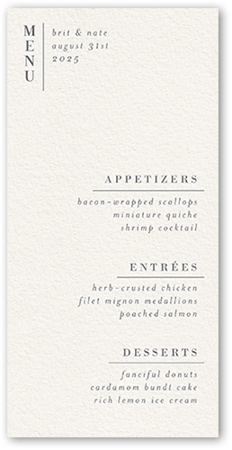 Give your wedding guests a taste of what's to come with an unforgettable menu. Coordinate the design with your wedding stationery suite for the perfect match.