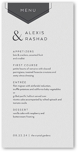 Give your wedding guests a taste of what's to come with an unforgettable menu. Coordinate the design with your wedding stationery suite for the perfect match.