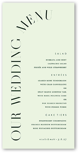 Give your wedding guests a taste of what's to come with an unforgettable menu. Coordinate the design with your wedding stationery suite for the perfect match.