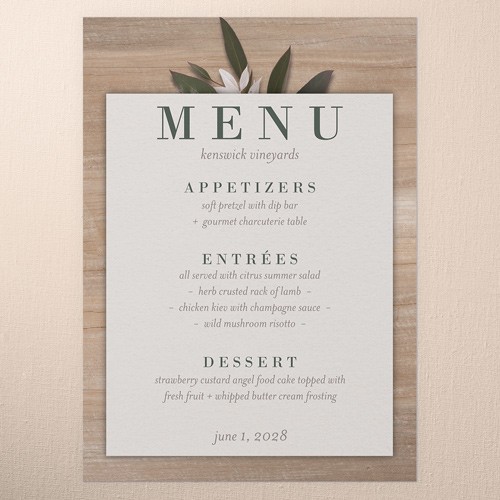 Give your wedding guests a taste of what's to come with an unforgettable menu. Coordinate the design with your wedding stationery suite for the perfect match.