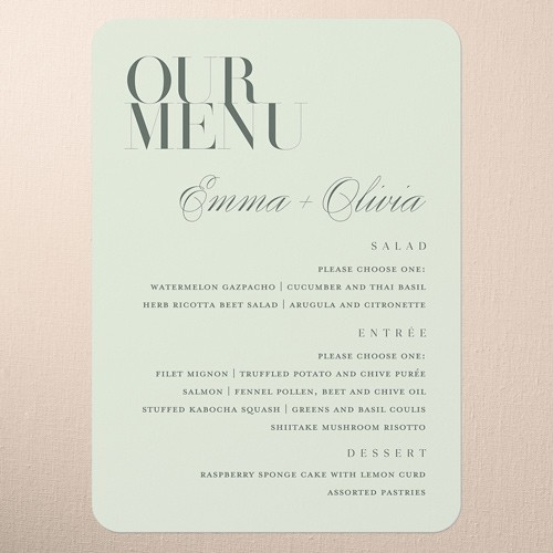 Serene Simplicity Wedding Menu