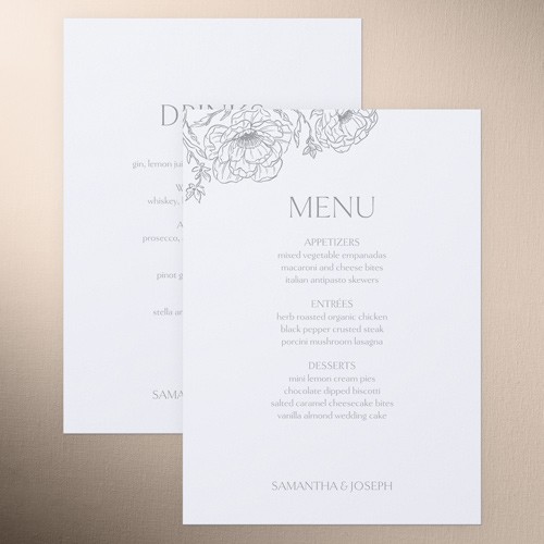 Give your wedding guests a taste of what's to come with an unforgettable menu. Coordinate the design with your wedding stationery suite for the perfect match.