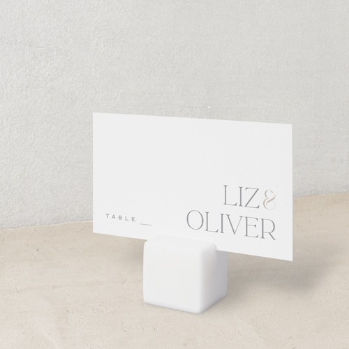 Make every seat feel special with our custom place cards. These wedding place cards are designed to be personalized with your guests’ names, table numbers, and your choice of font. Match your place cards and escort cards to your invitation style for a cohesive look that carries through every part of your day.