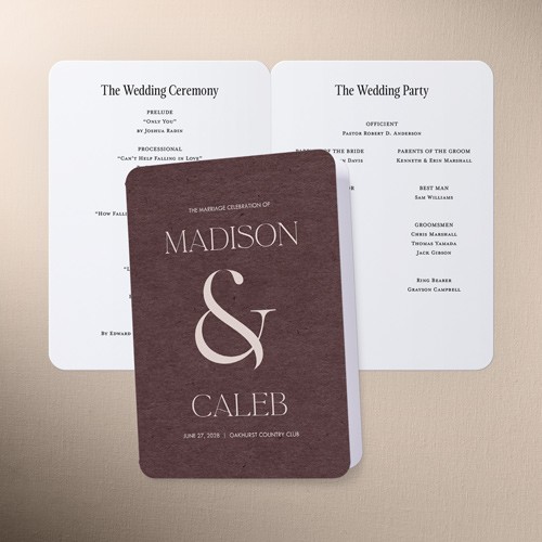 Share all the details of your big day with a personalized program that’s sure to impress your guests. It’s the perfect way to make them feel more a part of the ceremony. Select a program that coordinates with your invitations, RSVP cards, place cards and more.